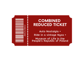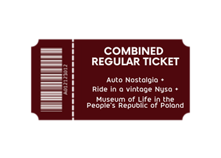 The combined ticket includes a visit to the Auto Nostalgia exhibition, a ride in a vintage Nysa vehicle to the Museum of Life in the People's Republic of Poland and entrance to the Museum. The ticket must be purchased for the specific departure time of the Nysa, while the exhibitions can be entered at any time